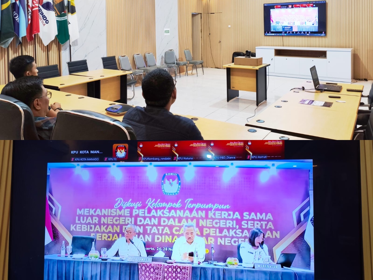 Dalam upaya memperkuat tata kelola kelembagaan dan meningkatkan kualitas pelaksanaan kerja sama, KPU Kota Manado mengikuti Diskusi Kelompok Terpumpun (DKT) dengan tema “Mekanisme Pelaksanaan Kerja Sama Luar Negeri dan Dalam Negeri, serta Kebijakan dan Tata Cara Pelaksanaan Perjalanan Dinas Luar Negeri”. Kegiatan ini digelar pada Kamis, 27 November 2025 pukul 15.30 WITA secara virtual melalui Zoom Meeting.