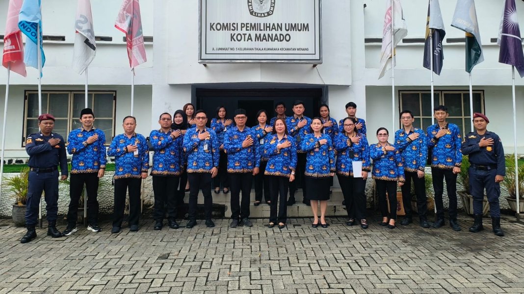 Manado – Komisi Pemilihan Umum (KPU) Kota Manado melaksanakan Upacara Peringatan Hari Ulang Tahun ke-54 KORPRI pada Senin, 1 Desember 2025 pukul 07.30 WITA, yang diikuti oleh seluruh jajaran sekretariat KPU Kota Manado. Tahun ini, upacara mengangkat tema nasional “Bersatu, Berdaulat, Bersama KORPRI, Dalam Mewujudkan Indonesia Maju.”