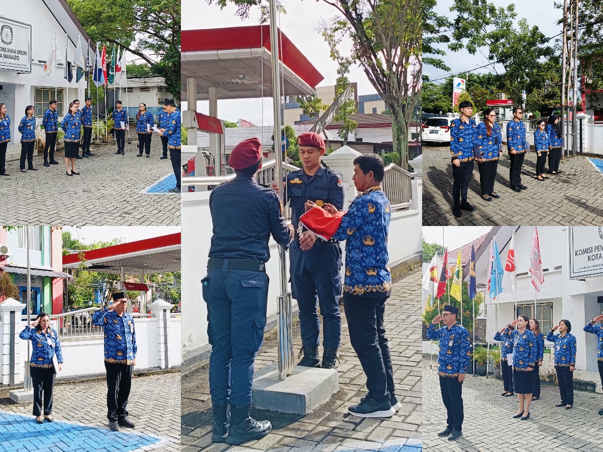 Upacara berlangsung tertib dan penuh khidmat dengan Sekretaris KPU Kota Manado, Bapak Nolvi O. Lendway, bertindak sebagai Inspektur Upacara, serta Kasubag KUL, Ibu Henny A. Sengkey, sebagai Komandan Upacara.