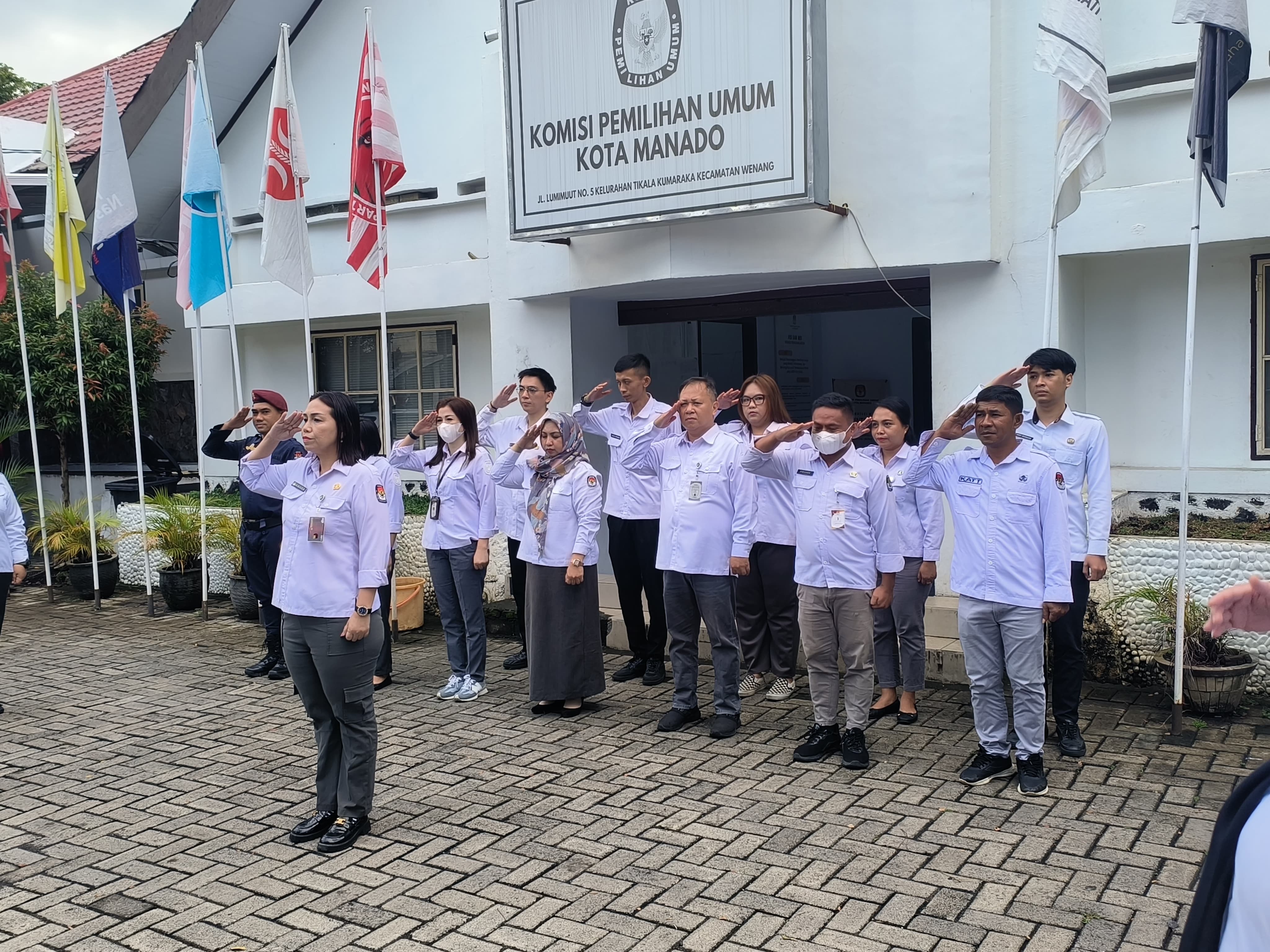 Apel pagi tersebut dipimpin oleh Kepala Sub Bagian Keuangan, Umum, dan Logistik (KUL) KPU Kota Manado, Henny A. Sengkey, yang bertindak sebagai Komandan Apel. Sementara itu, Pembina Apel pada kesempatan ini adalah Anggota KPU Kota Manado, Hasrul Anom, yang menyampaikan arahan kepada seluruh peserta apel.