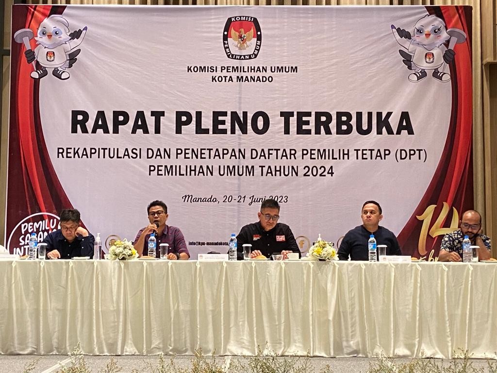 Kegiatan rapat pleno ini dibuka oleh Ketua KPU Kota Manado, Jusuf J. Wowor. Dalam sambutannya menyampaikan bahwa, proses pemutakhiran data pemilih telah dilaksanakan oleh seluruh jajaran KPU Kota Manado dengan melibatkan setiap stakeholder. Dalam pemutakhiran data pemilih setiap jajaran KPU Kota Manado bersama dengan PPK dan PPS telah bekerja sebaik mungkin, dari tahapan coklit yang melibatkan Petugas Pemutakhiran Data Pemilih (Pantarlih) mereka turun ke setiap rumah dan terus berlanjut pemutakhiran data yang dilaksanakan oleh setiap jajaran KPU Kota Manado sehingga boleh sampai di Rapat Pleno Rekapitulasi dan Penetapan Daftar Pemilih Tetap.