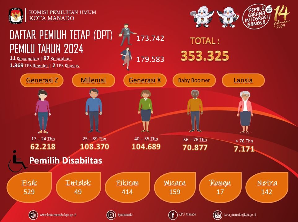 Selanjutnya, rapat pleno ini dipimpin oleh Ketua Divisi Perencanaan, Data dan Informasi KPU Kota Manado Abdul Gafur Subaer. Hasil Rapat Pleno menetapkan Daftar Pemilih Tetap di Kota Manado untuk Pemilihan Umum Tahun 2024 berjumlah 353.325 pemilih yang tersebar di 1.371 TPS, 87 Kelurahan, 11 Kecamatan.