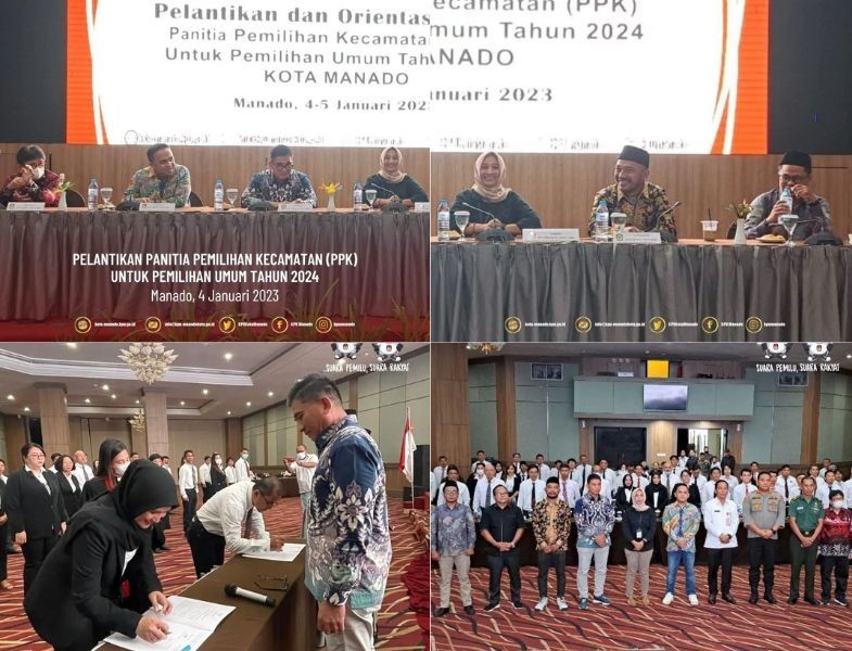 PPK di 11 kecamatan di Manado, melantik 1.369 petugas pemutakhiran data pemilih atau dengan sebutan lain (Pantarlih) pada Minggu, (12/2) di masing-masing Kecamatan. Pelaksanaan Pelantikan Pantarlih dilakukan beragam pada kelurahan yang ada dengan mengumpulkan di satu tempat yang sama. Pantarlih yang baru dilantik itu langsung mengikuti bimbingan teknis (Bimtek) yang dilaksanakan di masing-masing PPK, kemudian diikuti dengan apel akbar atau kesiapan. Komisioner KPU Kota Manado didampingi oleh staf sekretariat melakukan monitoring pelantikan di masing-masing korwil. Pelantikan dilaksanakan pukul 13.00 Wita secara serentak, menyesuaikan dengan waktu kebaktian hari Minggu. Usai apel kesiapan dan Bimtek, Pantarlih langsung turun melakukan tugas di wilayahnya Masing-masing untuk melakukan pencocokan dan penelitian data pemilih. Selain tugasnya membantu KPU Kabupaten/Kota, PPK, dan PPS dalam melakukan penyusunan daftar pemilih dan pemutakhiran data pemilih serta Melaksanakan pencocokan dan penelitian data pemilih, tugas lainnya adalah menyampaikan hasil pencocokan dan penelitian kepada PPS yang diberikan oleh KPU, KPU Provinsi, KPU Kabupaten/Kota, PPK, dan PPS sesuai dengan ketentuan peraturan perundang-undangan, Pantarlih bekerja setiap hari terhitung mulai 12 Februari 2023 sampai 14 Maret 2023 untuk memutakhirkan data pemilih. Kemudian Pantarlih yang sudah dilantik mendapat bimbingan teknis dan langsung melaksanakan tugas dan tanggung jawab nya untuk melakukan pencocokan dan penelitian data pemilih. Ada beberapa tokoh yang mendapat kesempatan pertama menjadi warga kota Manado untuk dilakukan pencocokan dan penelitian data pemilih sebagai pemilih di kota Manado, seperti di kecamatan Tikala ada ibu Dra. Aaltje Dondokambey selaku Ketua DPRD Kota Manado yang didatangi oleh pantarlih di kediaman pribadinya. "Sebagai ketua DPRD Manado, saya memberikan apresiasi yang tinggi kepada KPU serta Pantarlih yang melakukan Coklit ini, yang juga diawasi Bawaslu sebagai salah satu tahapan menuju pemilihan umum," ucap Ibu Aaltje setelah di lakukan coklit oleh petugas Pantarlih. Dia juga menambahkan, sesuai dengan pernyataan ketua KPU Manado, bahwa coklit itu hanya dilaksanakan selama Februari sampai Maret 2023, maka sudah tentu dia berharap kiranya Pantarlih bisa melaksanakan tugas dengan baik dan tepat waktu serta dalam coklit yang dilakukan oleh Pantarlih, semuanya mudah, tidak ada yang ribet, petugas juga sangat baik dalam melakukan pendataan sehingga semuanya berjalan lancar. "Jadi Coklit ini mudah, tidak ribet, maka seluruh warga Manado terutama yang wajib pilih, harus menerima ketika petugas Pantarlih datang, sehingga pelaksanaannya juga cepat," katanya. Masih di kecamatan yang sama tetapi pada kelurahan yang berbeda Pantarlih Kelurahan Taas, melakukan pencocokan dan penelitian data pemilih di kediaman pribadi Sekretaris daerah (Sekda) Kota Manado, Dr. Micler Lakat, MH. Pantarlih melakukan pencocokan dan penelitian kemudian memutakhirkan data Dr. Micler Lakat bersama keluarganya, sehingga sesuai dengan ketentuan dan aturan yang ada. Hal senada juga disampaikan oleh Sekdakota, Micler Lakat, mengucapkan terima kasih kepada KPU yang sudah bekerja keras, melakukan Coklit di kediaman pribadinya yang berlokasi di Taas. Lakat juga mengimbau seluruh masyarakat Manado, untuk menyukseskan pelaksanaan pemilihan umum dengan cara selalu siap sedia ketika ada Pantarlih datang untuk melakukan pendataan. Harus langsung diterima dan memberikan keterangan yang benar, "Ketika didatangi harus diterima dan berikan data yang diperlukan, agar ketika waktunya tiba, tidak lagi bingung dan protes karena nama tidak terdata dan sebagainya," kata Lakat. Dia mengingatkan warga Manado, bahwa pemilihan umum ini dilaksanakan serentak, maka seluruh rakyat Indonesia wajib menyukseskan. Caranya dengan memberikan data yang benar kepada Pantarlih. Kemudian ada juga di Kecamatan Tuminting ibu Tutty Manalip, S.Th Selaku Tokoh Agama yang di datangi pantarlih di kediaman pribadinya untuk melakukan pencocokan dan penelitian data pemilih pada anggota keluarga dari ibu Manalip, dan Manalip juga menyampaikan beberapa pesan kepada warga kota Manado agar bisa berpartisipasi untuk membantu pantarlih yang nantinya datang ke rumah warga, kiranya nanti dalam memberikan dokumen yang diminta oleh pantarlih agar semua bisa berjalan dengan baik dan lancar.