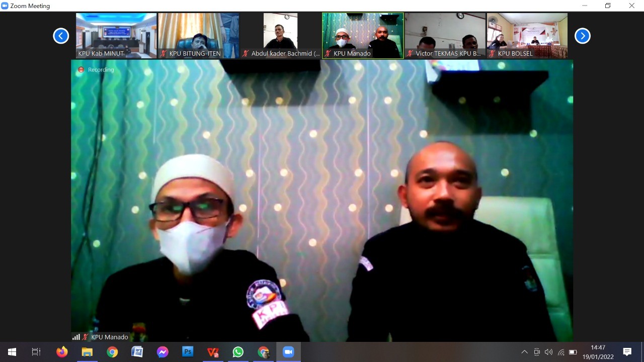 Manado, kota-manado.kpu.go.id – Rabu (19/01) KPU Kota Manado bersama 14 KPU Kabupaten/Kota se-Sulawesi Utara mengikuti Rapat Koordinasi dalam rangka Persiapan Tahapan Pemilihan Umum Serentak Tahun 2024 dilaksanakan oleh KPU Provinsi Sulawesi Utara bersama KPU Kabupaten/Kota se Sulawesi Utara secara daring melalui Zoom Cloud Meeting .