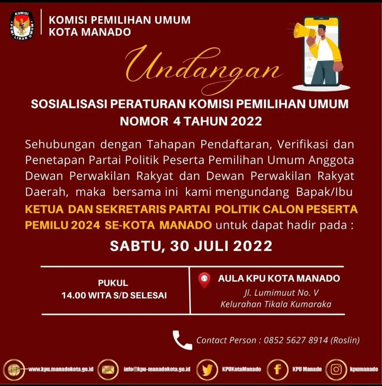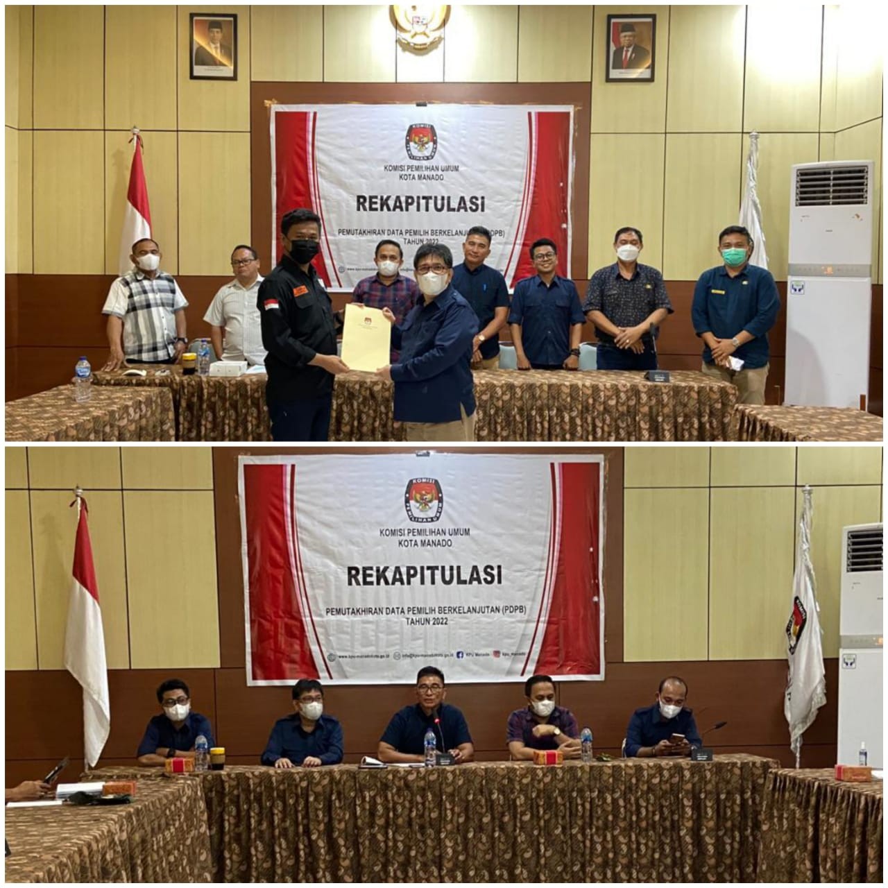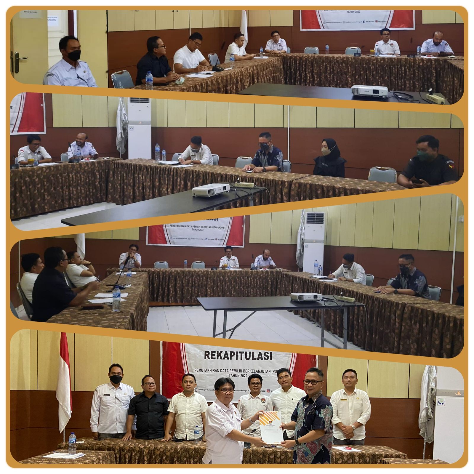 Manado, kota-manado.kpu.go.id – Komisi Pemilihan Umum (KPU) Kota Manado melaksanakan Rapat Rekapitulasi Daftar Pemilih Berkelanjutan untuk periode bulan Mei Tahun 2022 pada Senin (30/05/2022) bertempat di Aula KPU Kota Manado. Kegiatan ini dihadiri oleh Komisioner KPU Kota Manado, Sekretariat KPU Kota Manado dan Bawaslu Kota Manado. Rapat rekapitulasi Daftar Pemilih Berkelanjutan (DPB) dibuka oleh Ketua KPU Kota Manado Jusuf J. Wowor, didampingi oleh Komisioner KPU Kota Manado. Selanjutnya rapat rekapitulasi DPB dipimpin oleh Abdul Gafur Subaer selaku Ketua Divisi Perencanaan, Data dan Informasi KPU Kota Manado. Gafur menyampaikan saat ini kami sedang melakukan pendataan pemilih pemula di beberapa Sekolah Menengah Atas (SMA) yang ada di Kota Manado. “Selain melakukan pendataan di SMA, kami juga akan berkoordinasi dengan komunitas-komunitas besar yang ada di Kota Manado. Kami berharap komunitas-komunitas tersebut akan mendukung pelaksanaan pemutakhiran data pemilih berkelanjutan yang terus dilaksanakan oleh KPU Kota Manado” ungkap Gafur. “Hasil Rekapitulasi Daftar Pemilih Berkelanjutan berjumlah 331.783 dengan rincian pemilih laki-laki berjumlah 163.290 pemilih dan pemilih perempuan berjumlah 168.493 pemilih yang tersebar di 11 Kecamatan”, tambah Gafur Sementara itu, Anggota Bawaslu Kota Manado Heard Runtuwene menyampaikan bahwa selain melakukan pendataan pemilih pemula di Sekolah Menengah Atas, KPU Kota Manado juga harus terus berkoordinasi dengan Pemerintah. Saat ini pemerintah terus melakukan sensus penduduk. KPU Kota Manado diharapkan bisa berkoordinasi dengan pemerintah mengenai pelaksanaan sensus tersebut.
